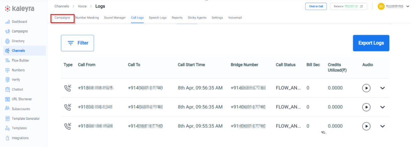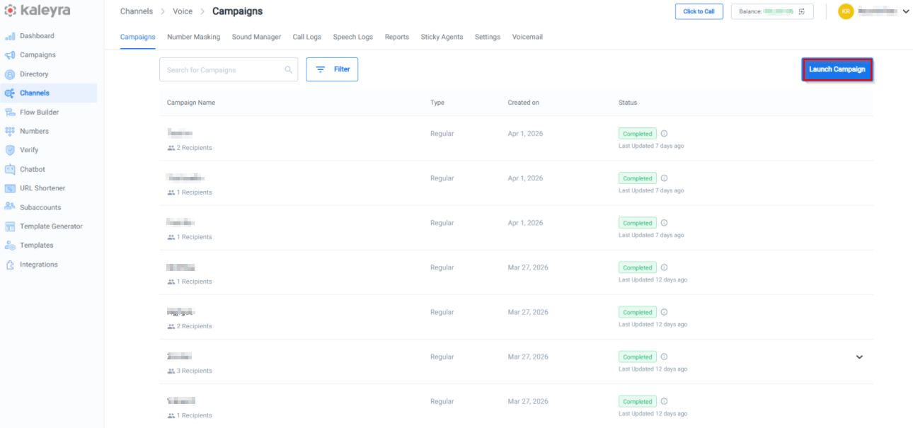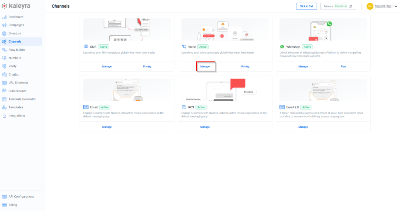 - Ensure you have a sufficient balance left (prepaid user) or enough monthly usage available (postpaid user) to launch your Voice campaign.