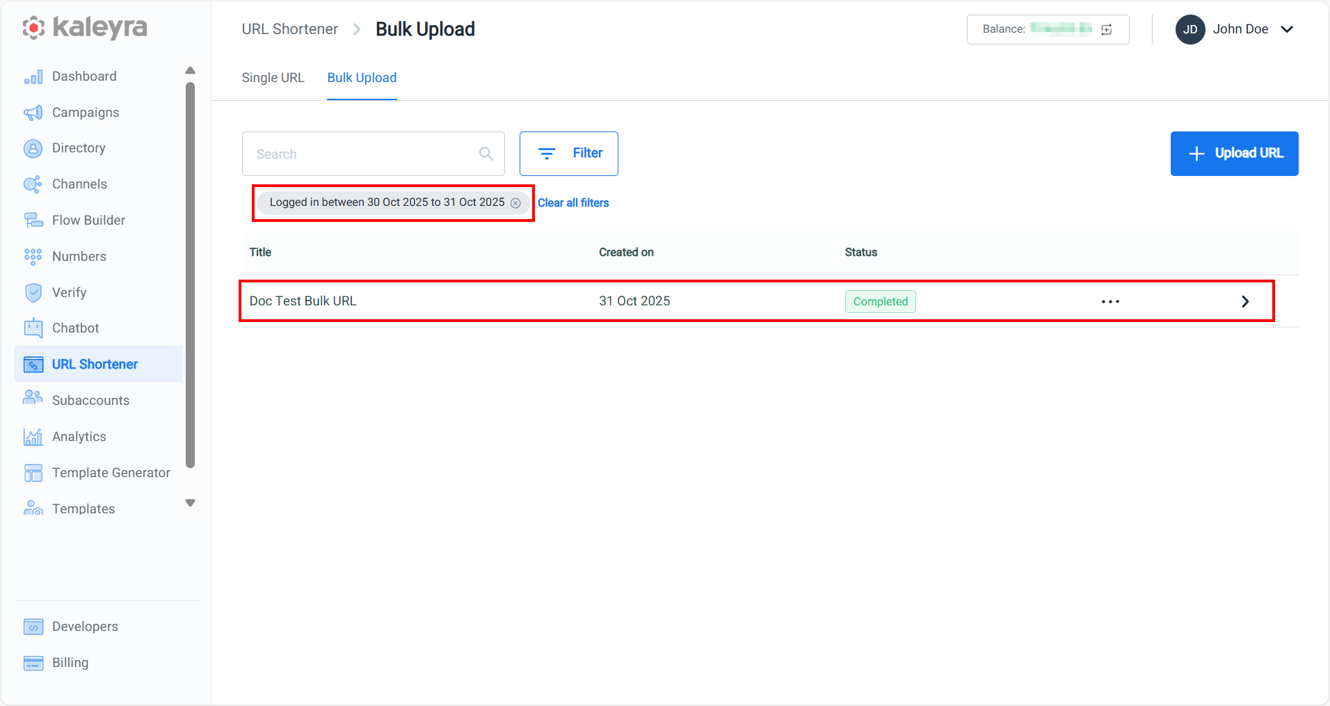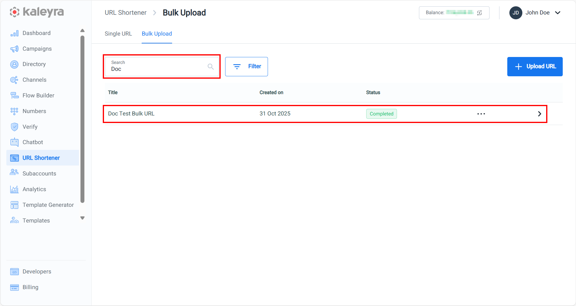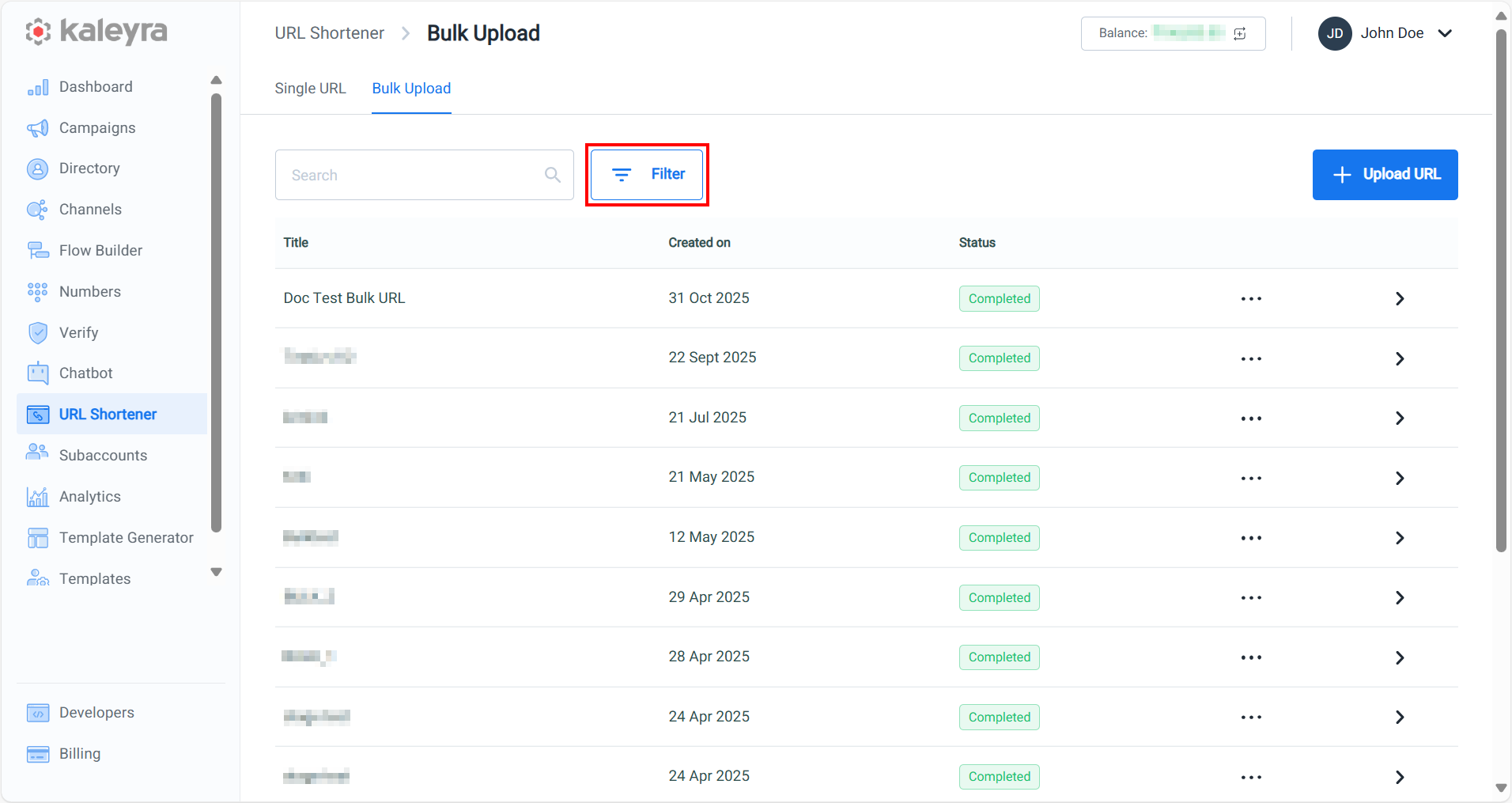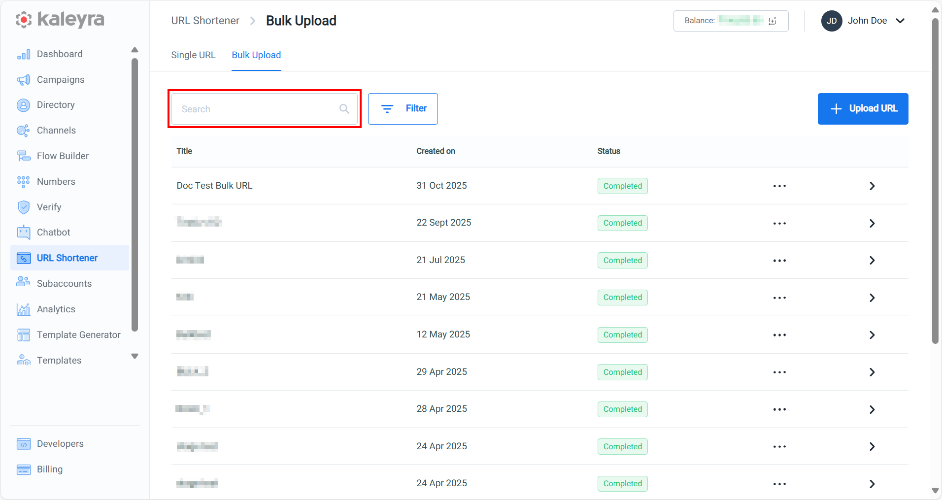 You can search or filter files containing bulk shortened URLs using the Kaleyra platform.
