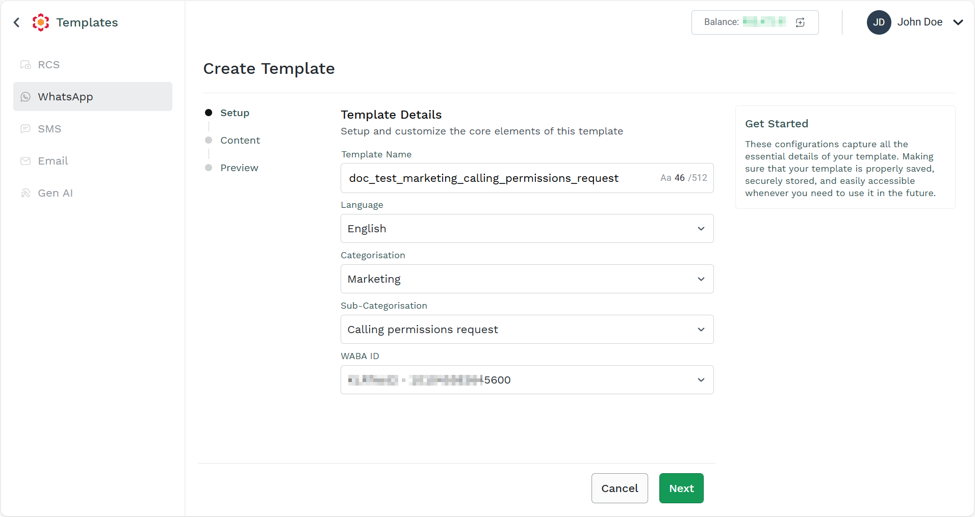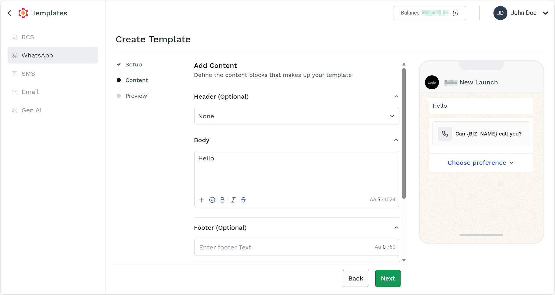 - Follow the steps 1 to step 3 of Create WhatsApp Marketing Template.