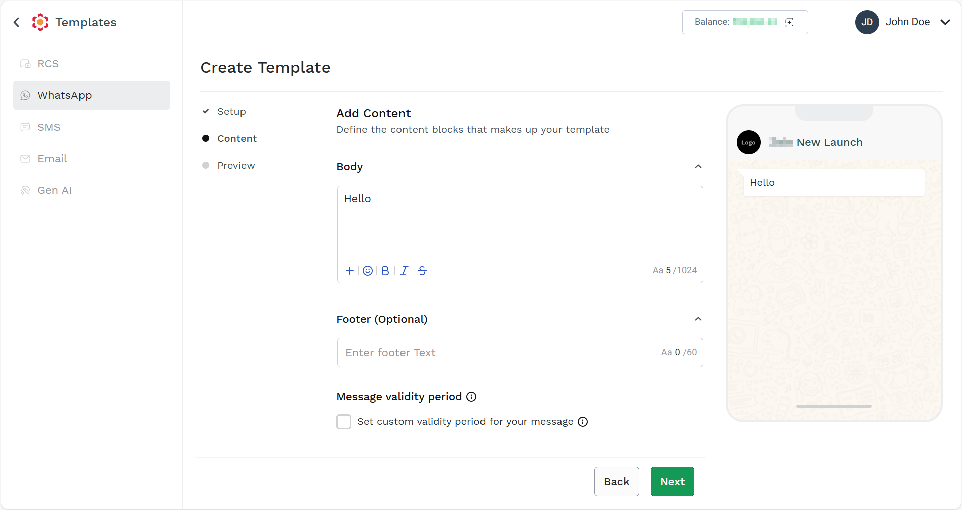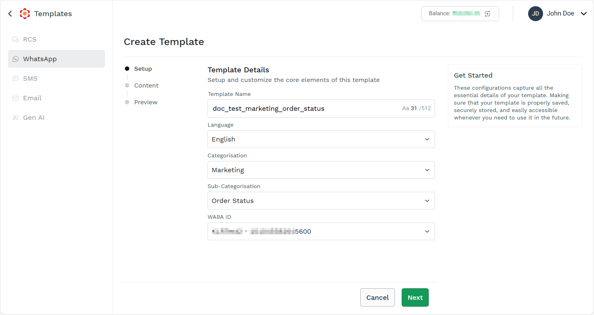 - Follow the steps 1 to step 3 of Create WhatsApp Marketing Template.